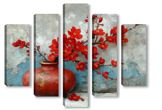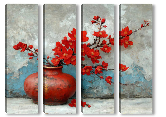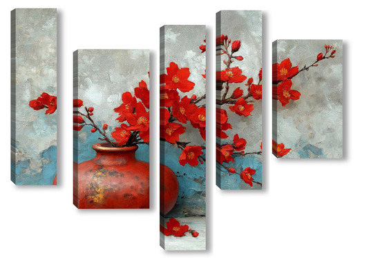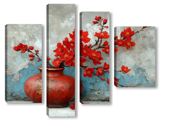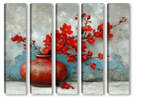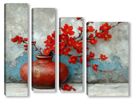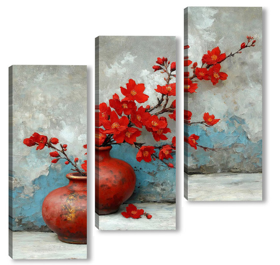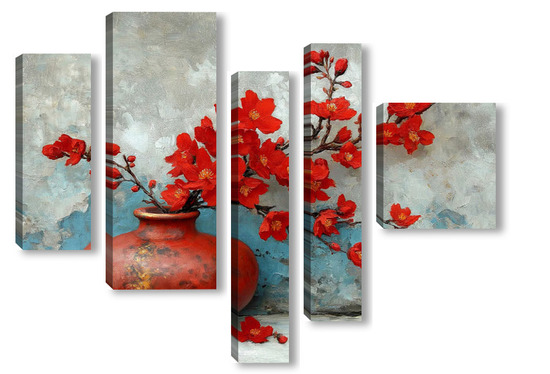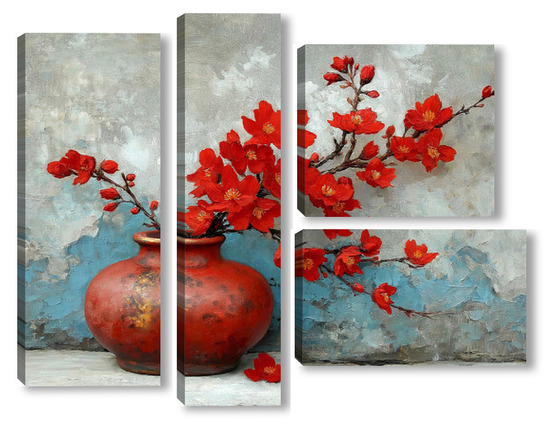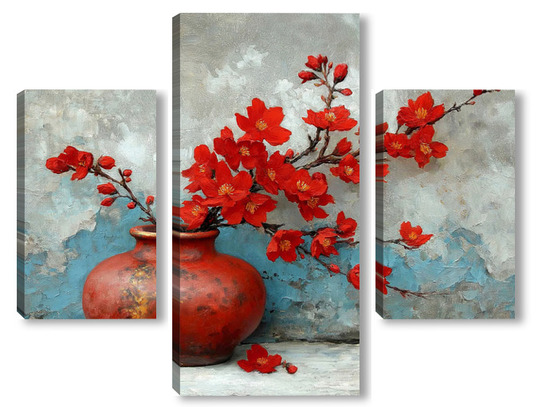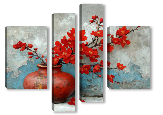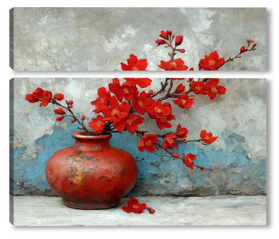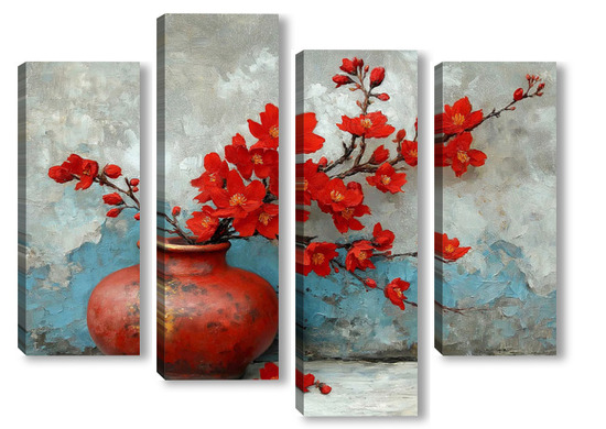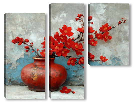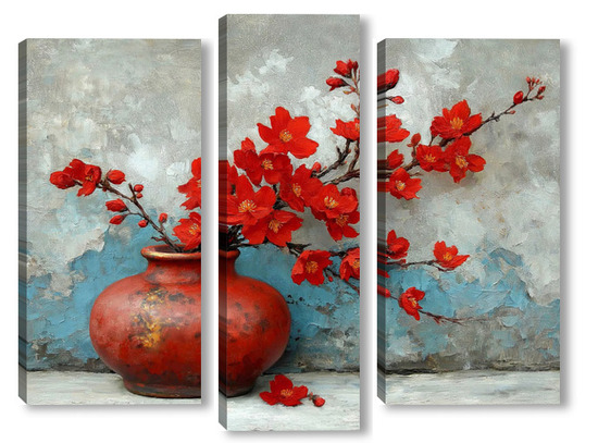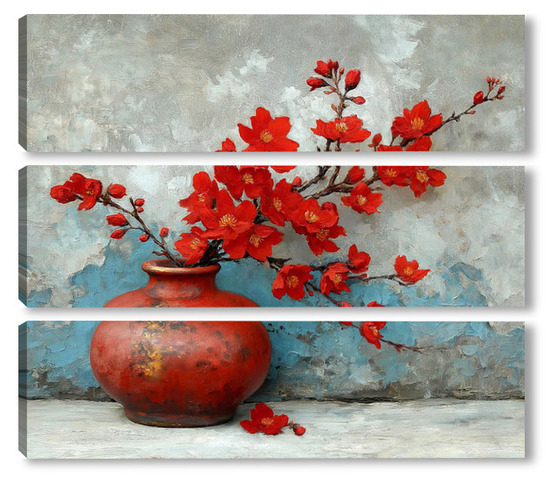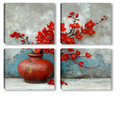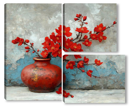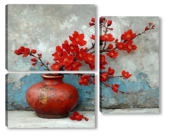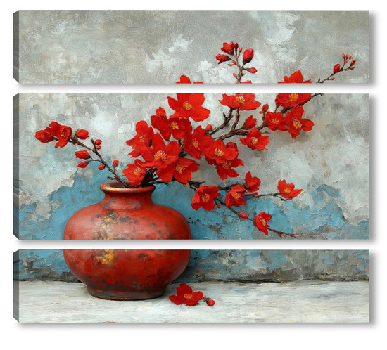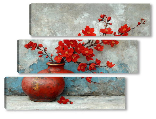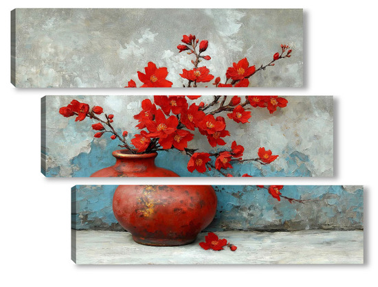 Модульная картина Алая ветвь в терракотовой вазе Алая ветвь в терракотовой вазе