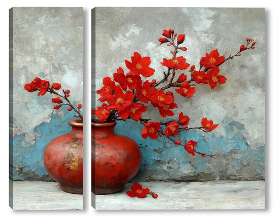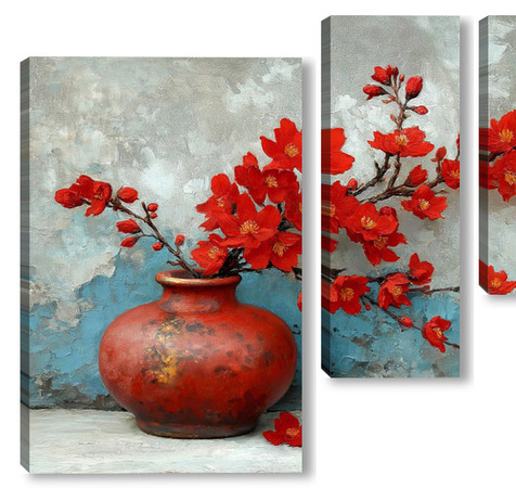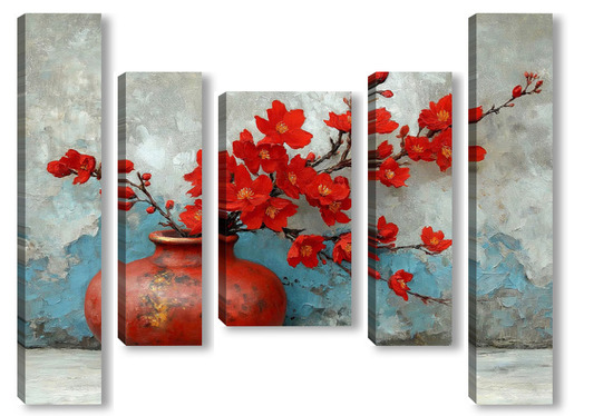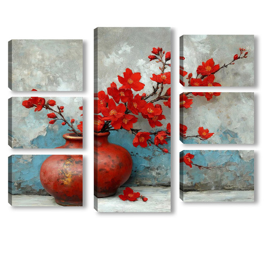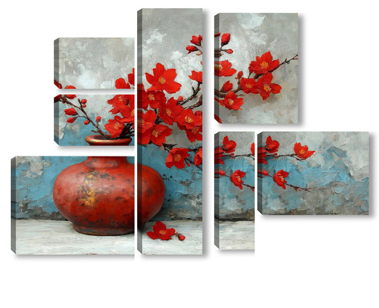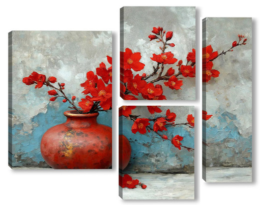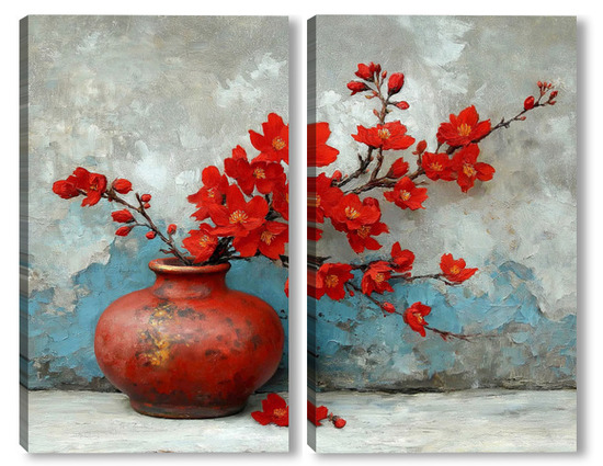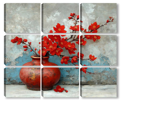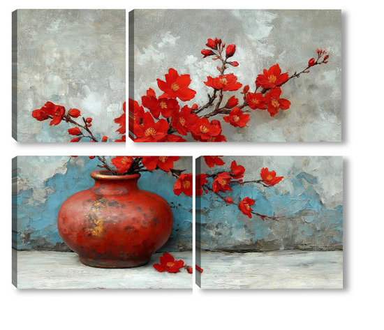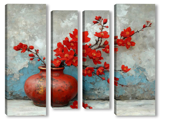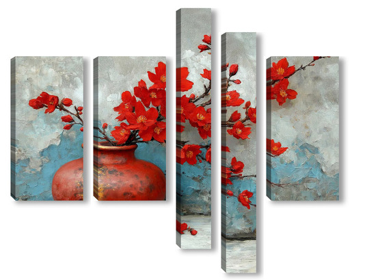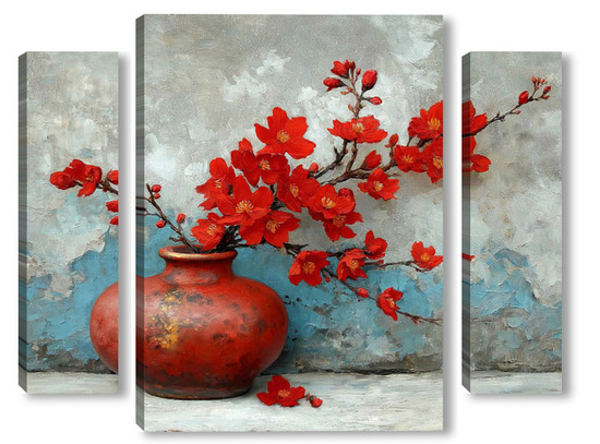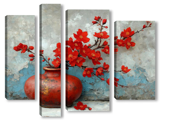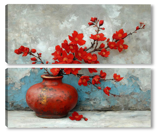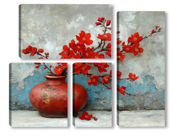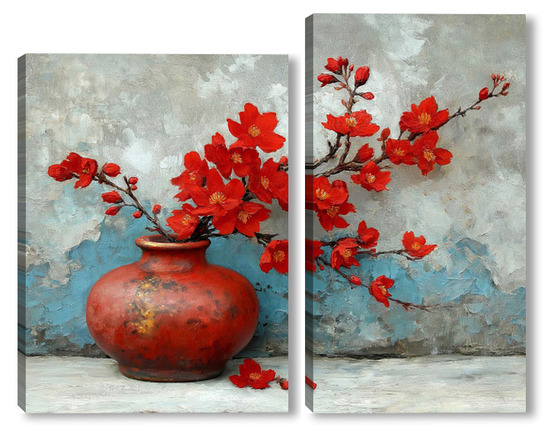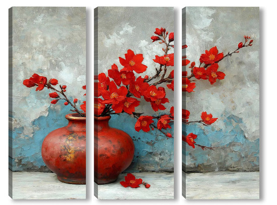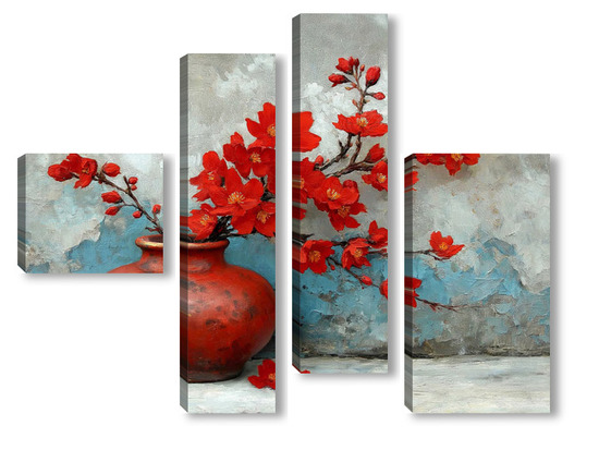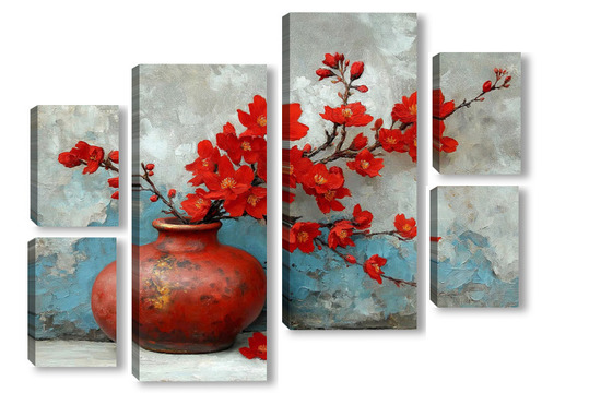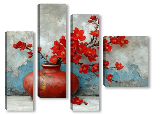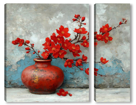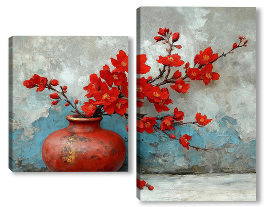 Модульная картина Алая ветвь в терракотовой вазе Алая ветвь в терракотовой вазе