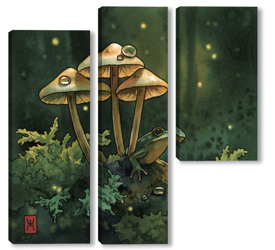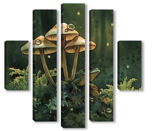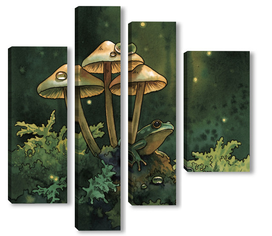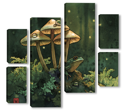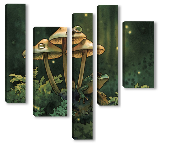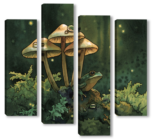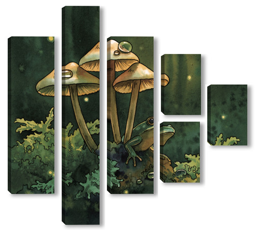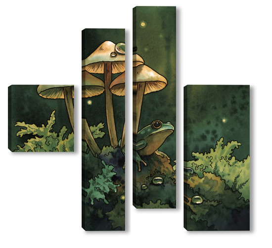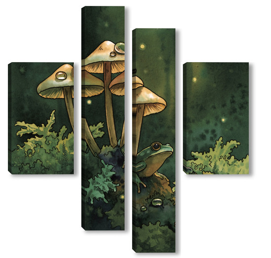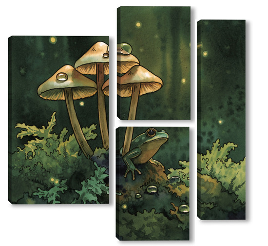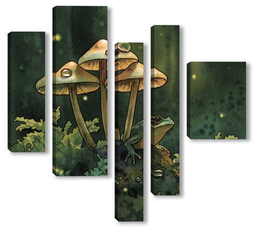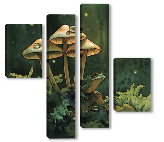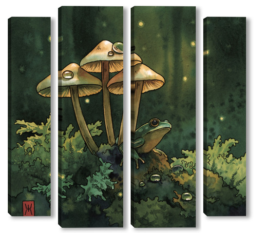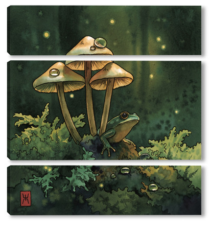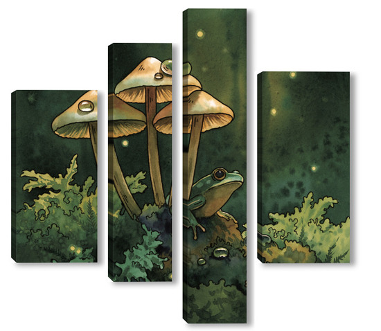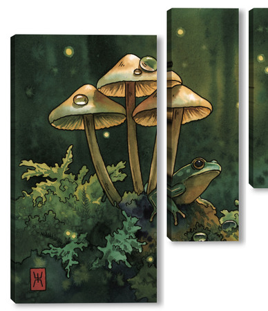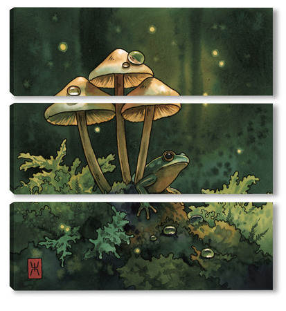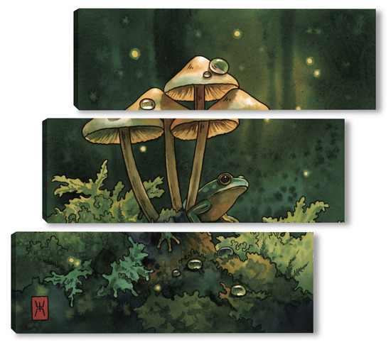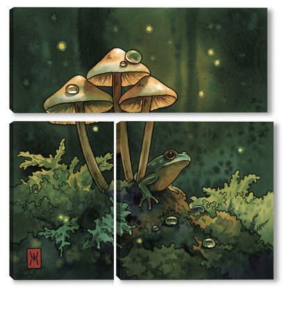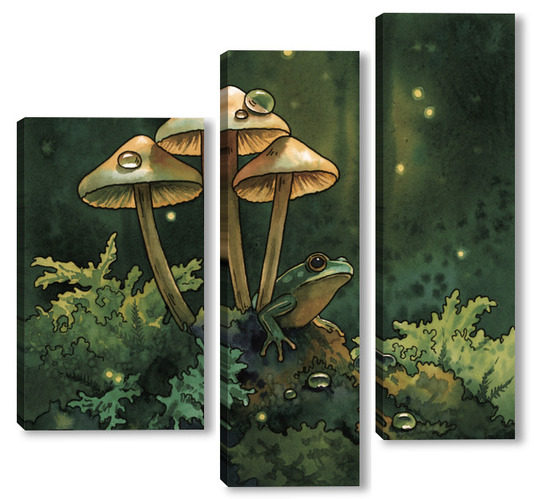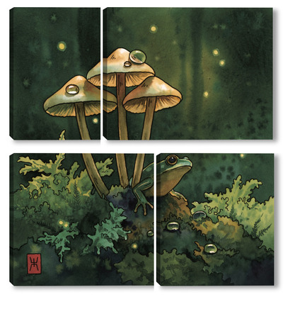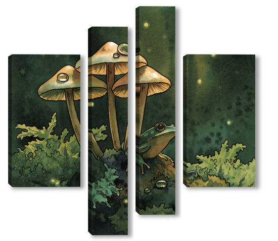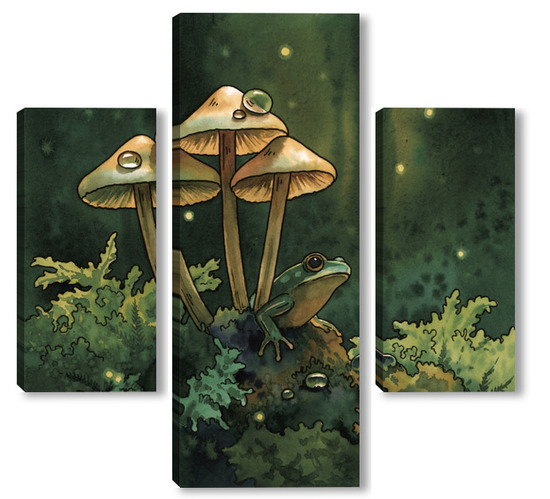 Модульная картина Акварель "Лягушка в грибах" Акварель "Лягушка в грибах"