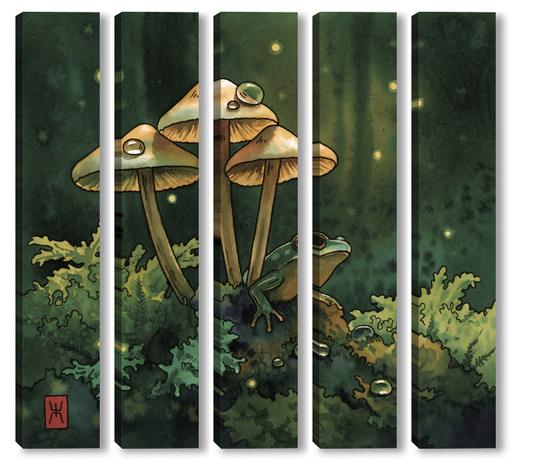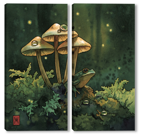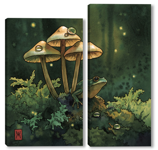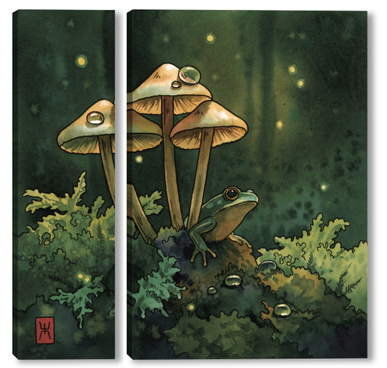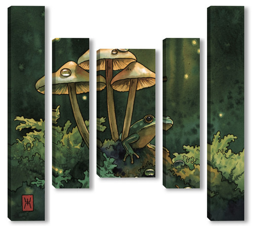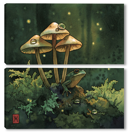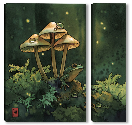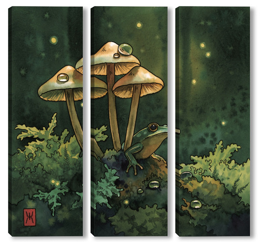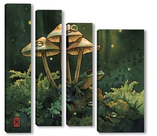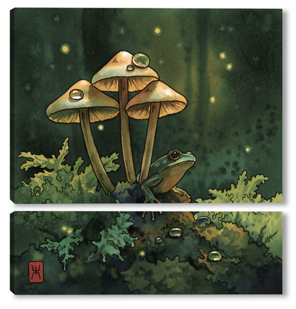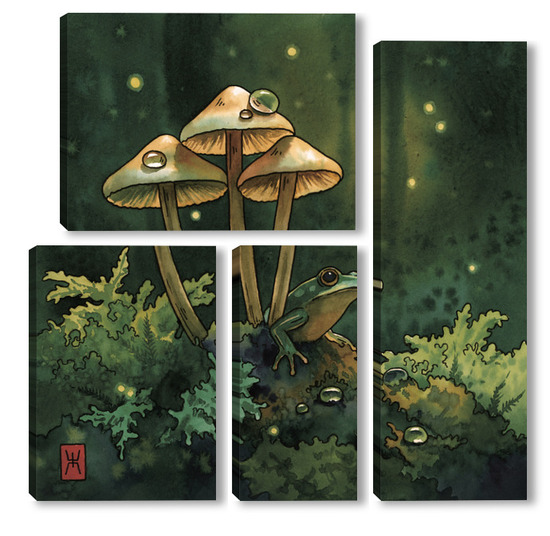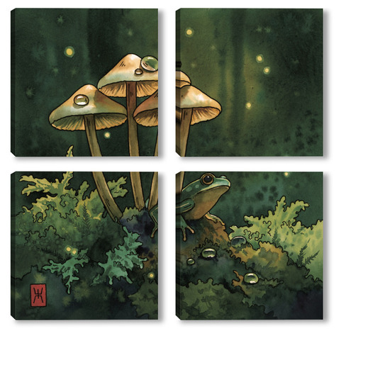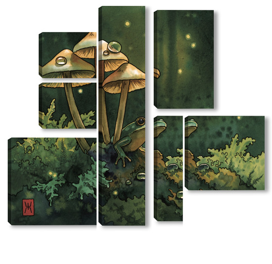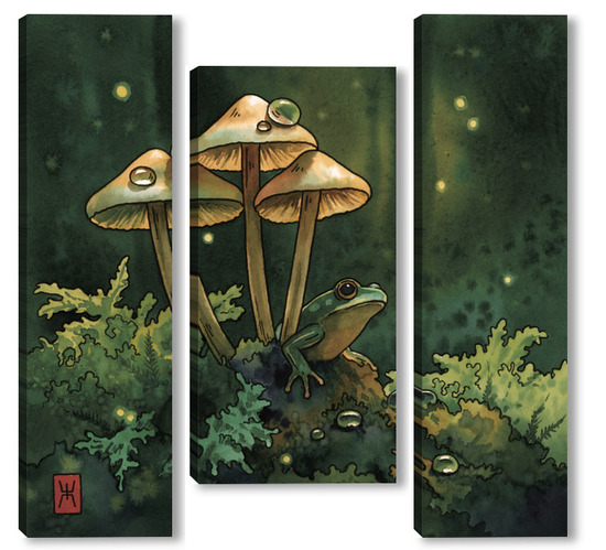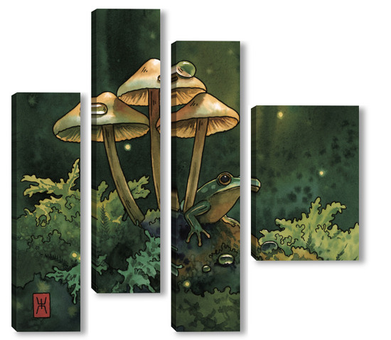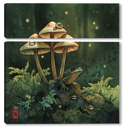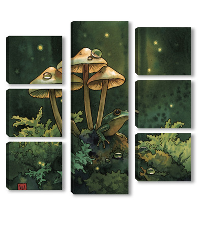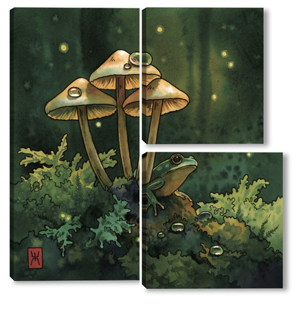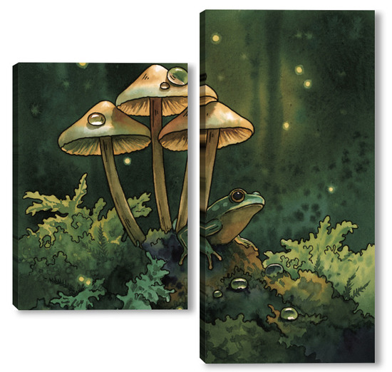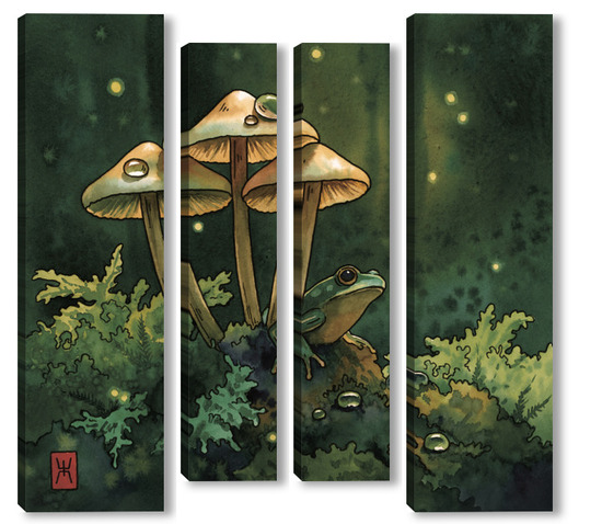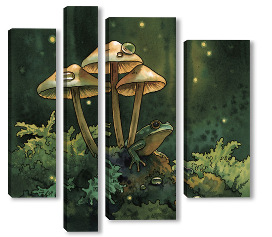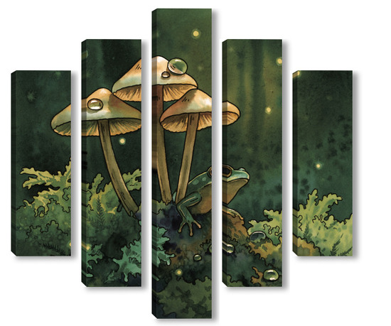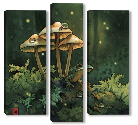 Модульная картина Акварель "Лягушка в грибах" Акварель "Лягушка в грибах"