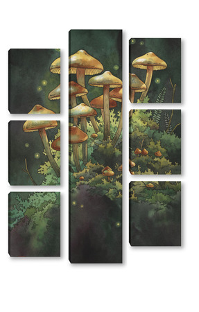 Модульная картина Акварель "Грибной лес" Акварель "Грибной лес"