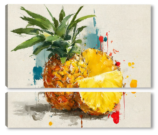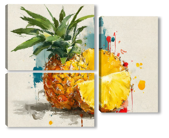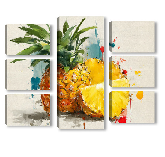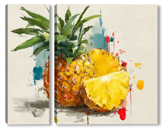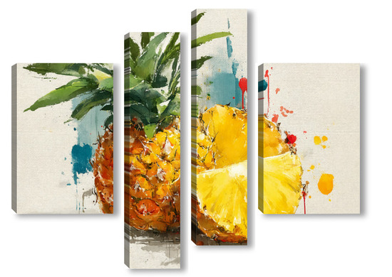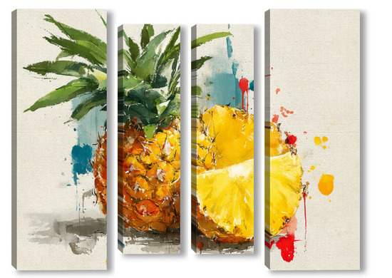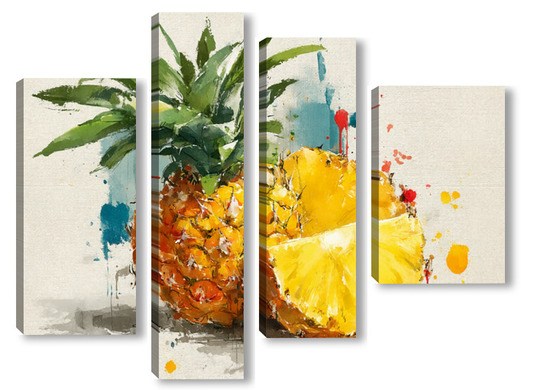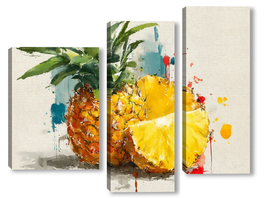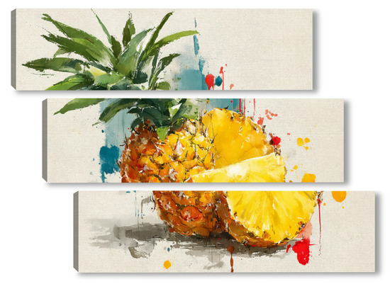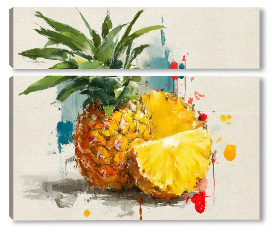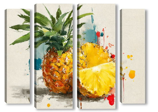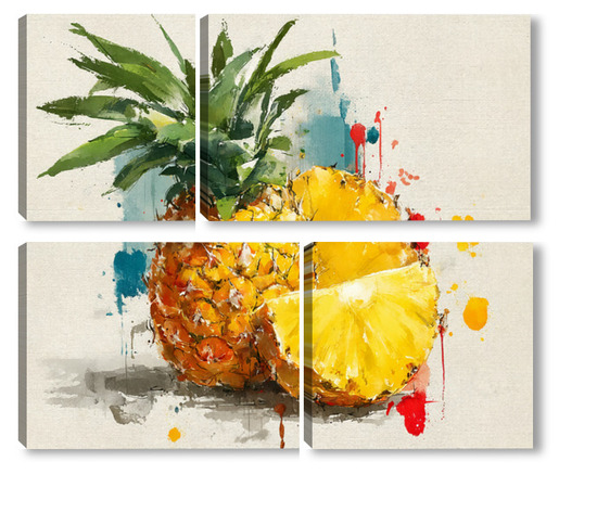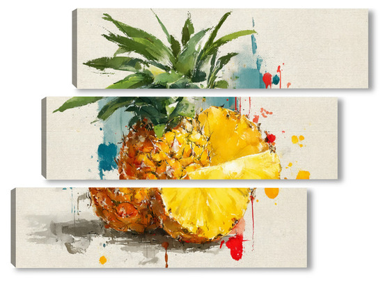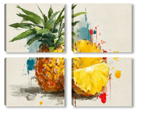 Модульная картина Ананас в акварельных брызгах Ананас в акварельных брызгах