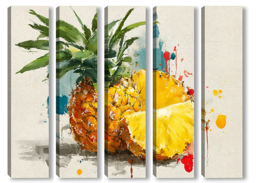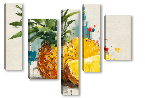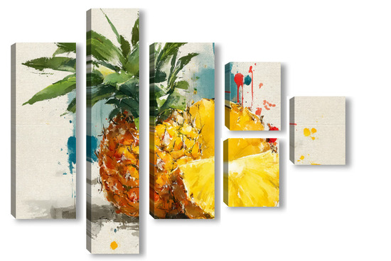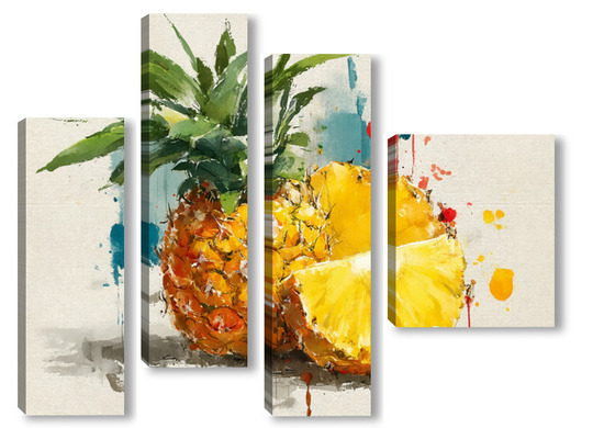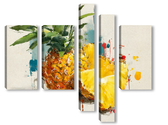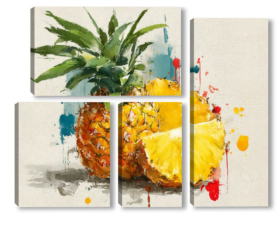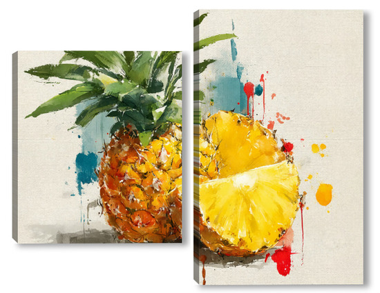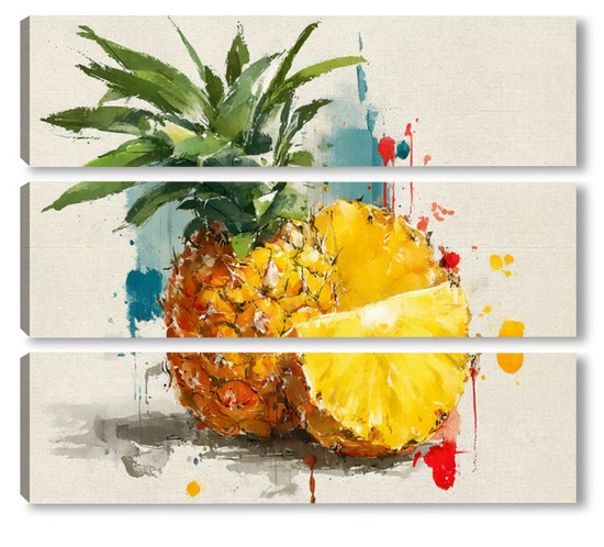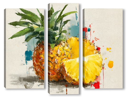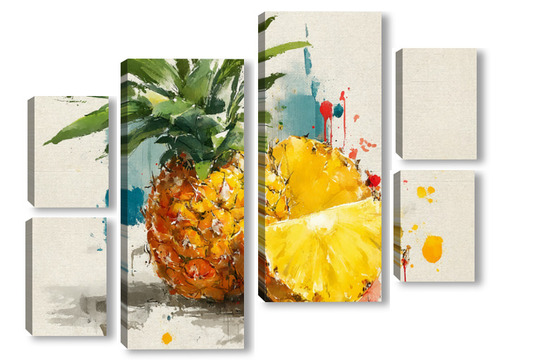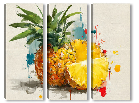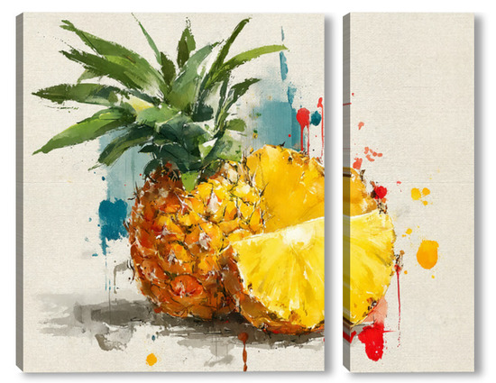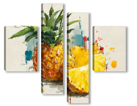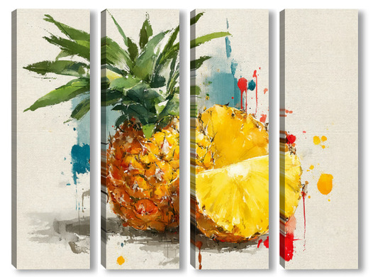 Модульная картина Ананас в акварельных брызгах Ананас в акварельных брызгах
