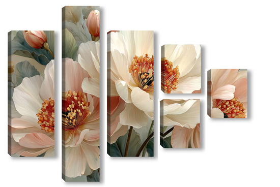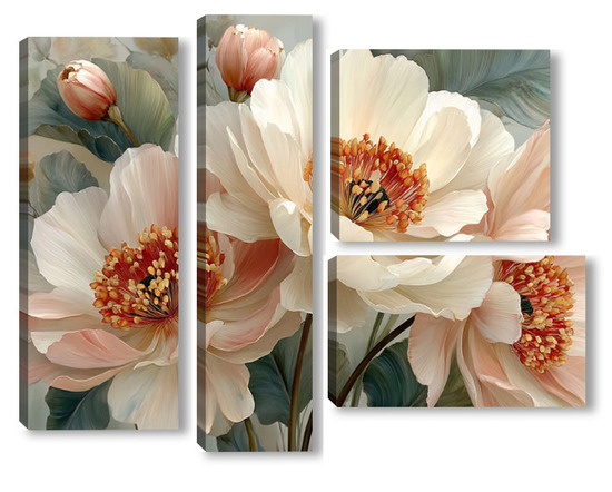 Модульная картина Жемчужные пионы Жемчужные пионы