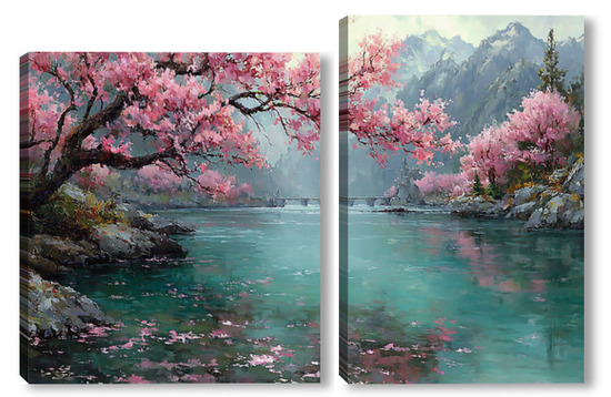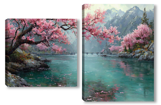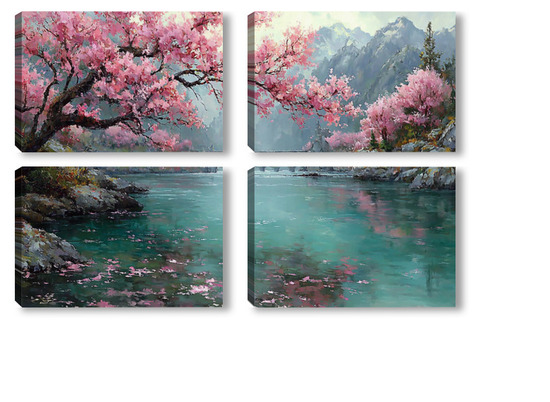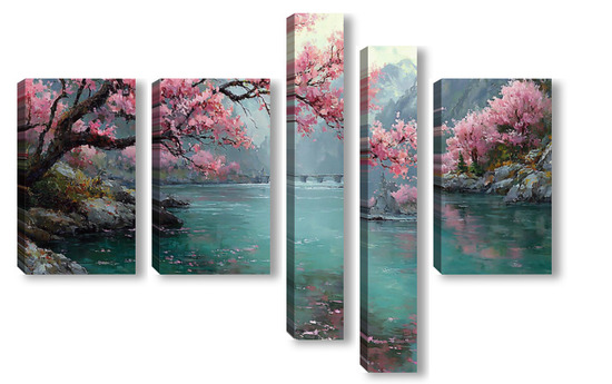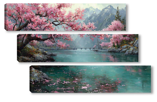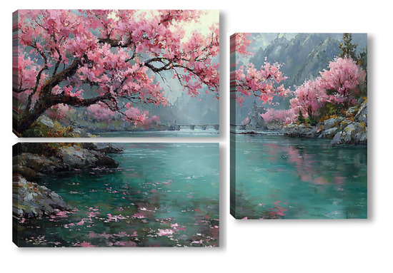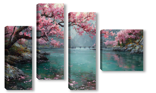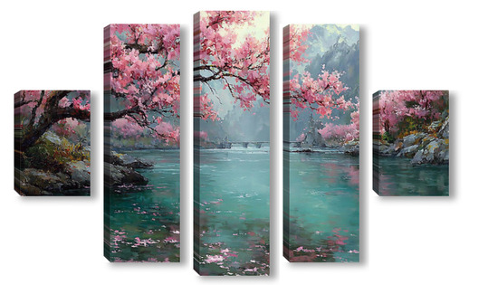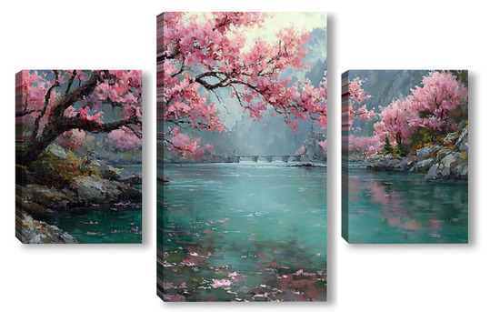 Модульная картина Сакура над водой Сакура над водой