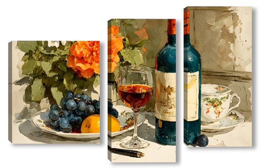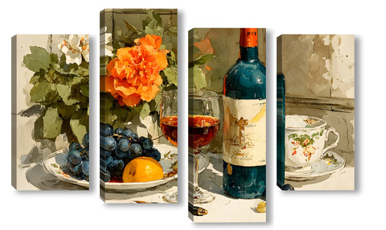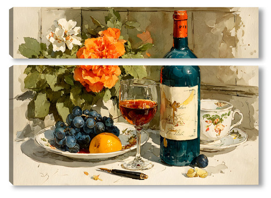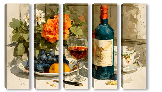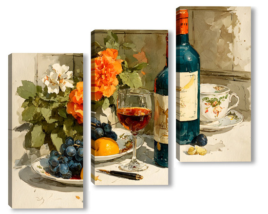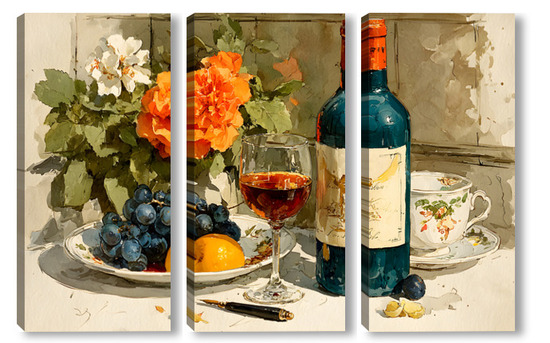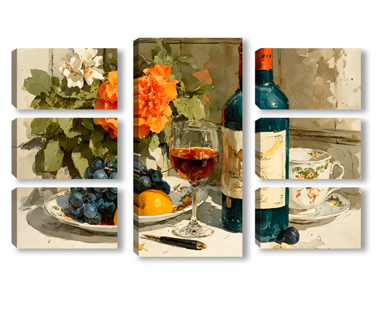 Модульная картина Натюрморт вино и цветы Натюрморт вино и цветы