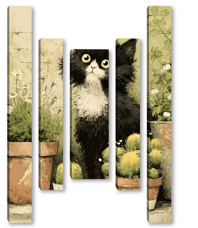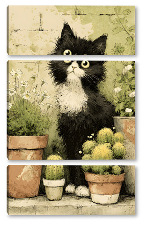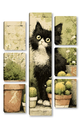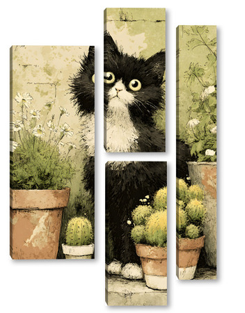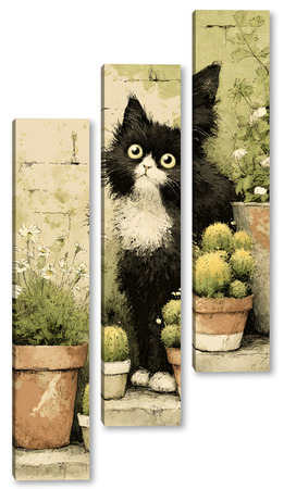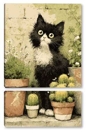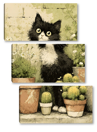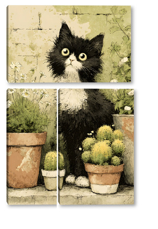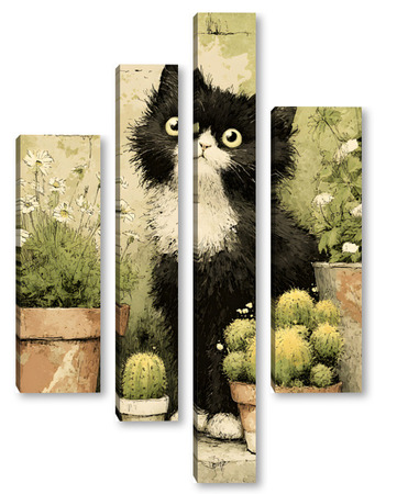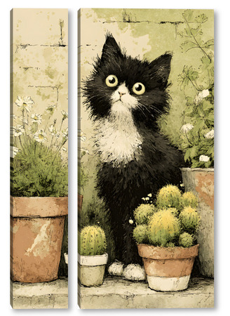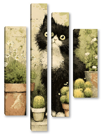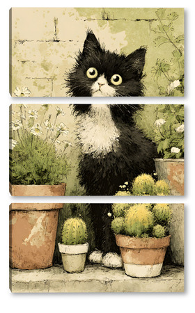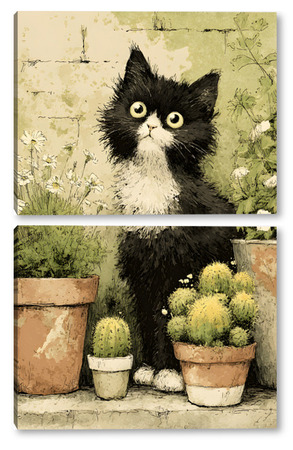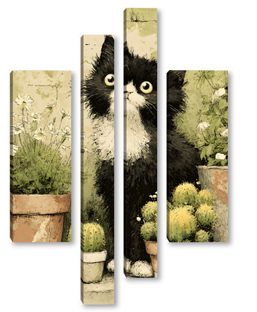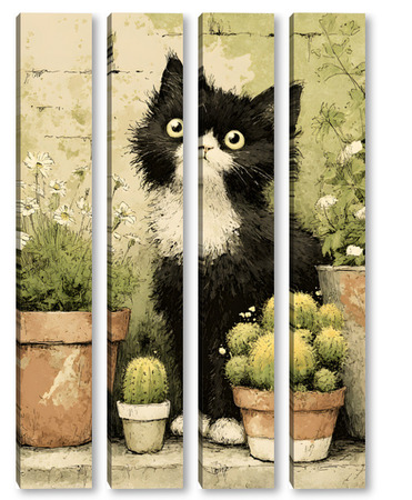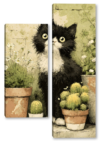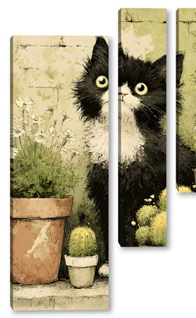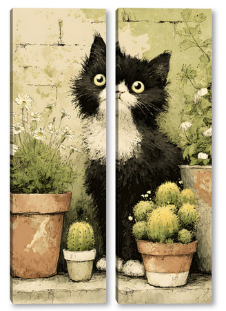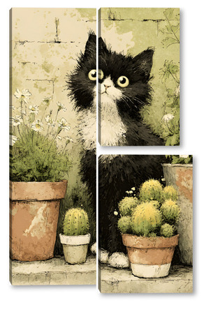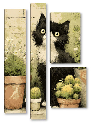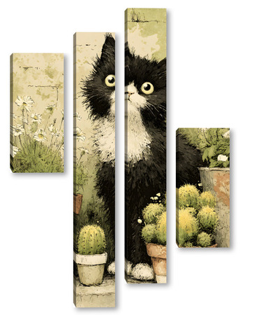 Модульная картина Кот и кактусы Кот и кактусы