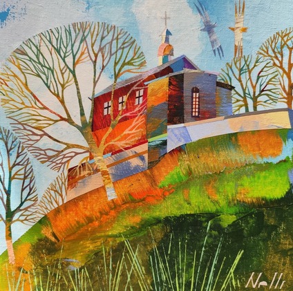 Современное искусство. Пейзаж. Парк на берегу Немана. Коложская церковь 12 века.