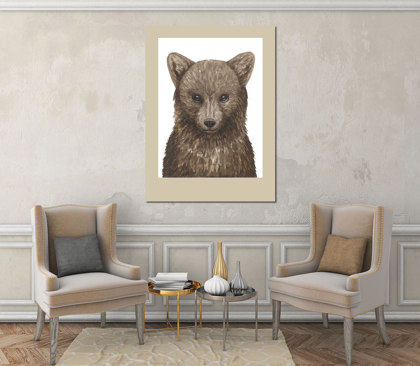 Портрет медвежонка в сочетании с другими постерами из серии "Лесные животные" прекрасно впишется в интерьер детской комнаты.