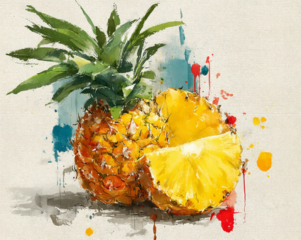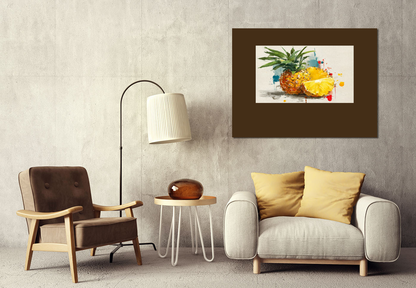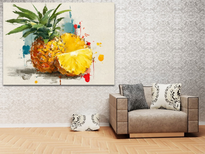 Игривый и экспрессивный натюрморт с ананасом станет ярким акцентом в современном интерьере кухни - гостиной.