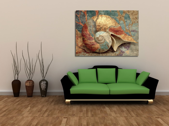 Декоративная картина с изображением окаменелой раковины. Сочетание природных мотивов и художественной стилизации. Отлично подойдёт для оформления гостиной, кабинета или зоны отдыха.