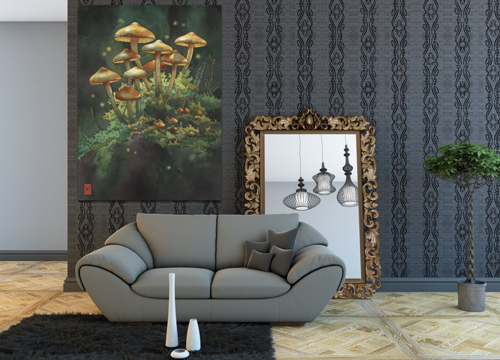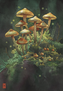 Акварель "Грибной лес"